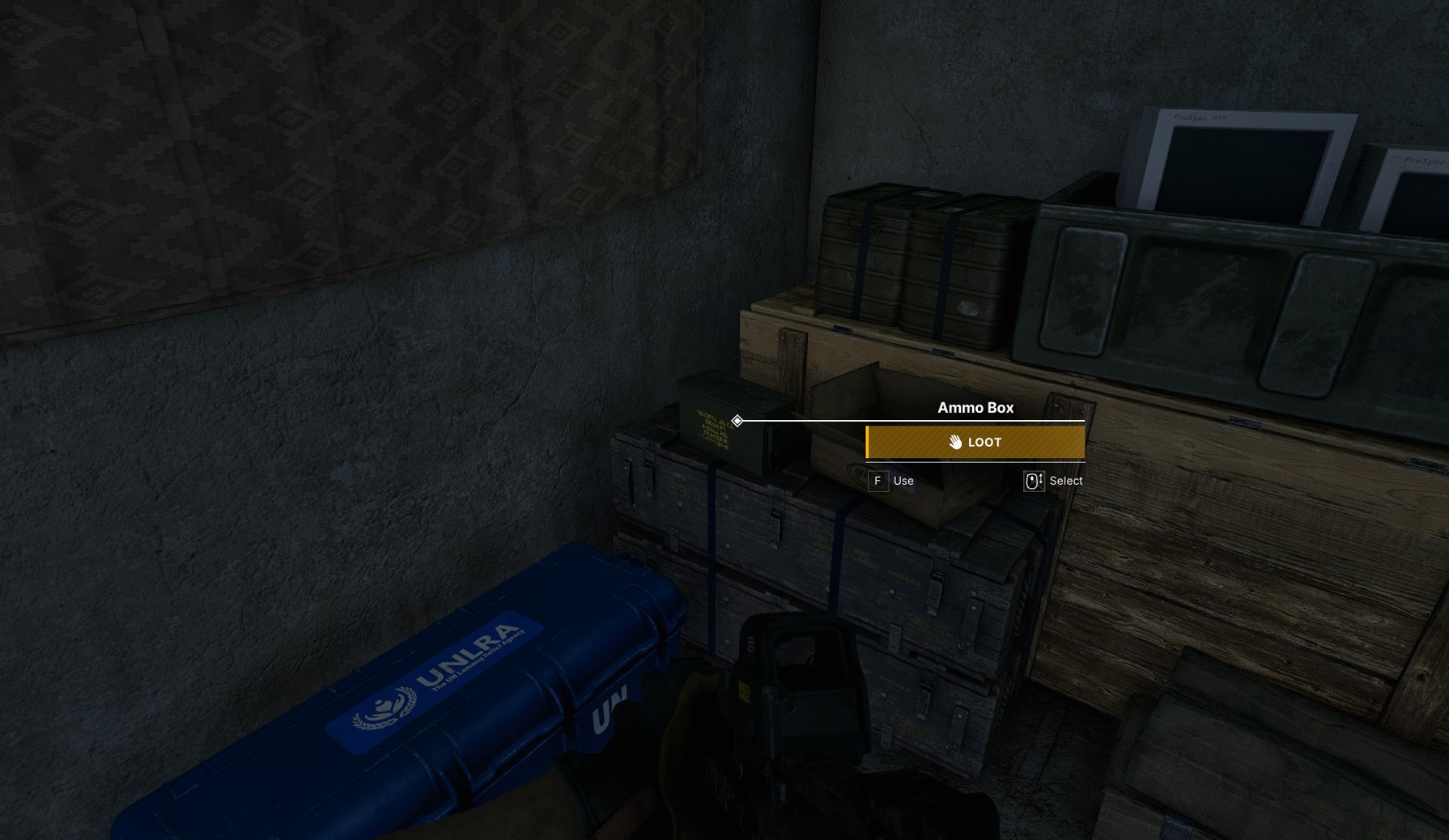 Inside the market office beside the UNLRA weapon crate.Additional details