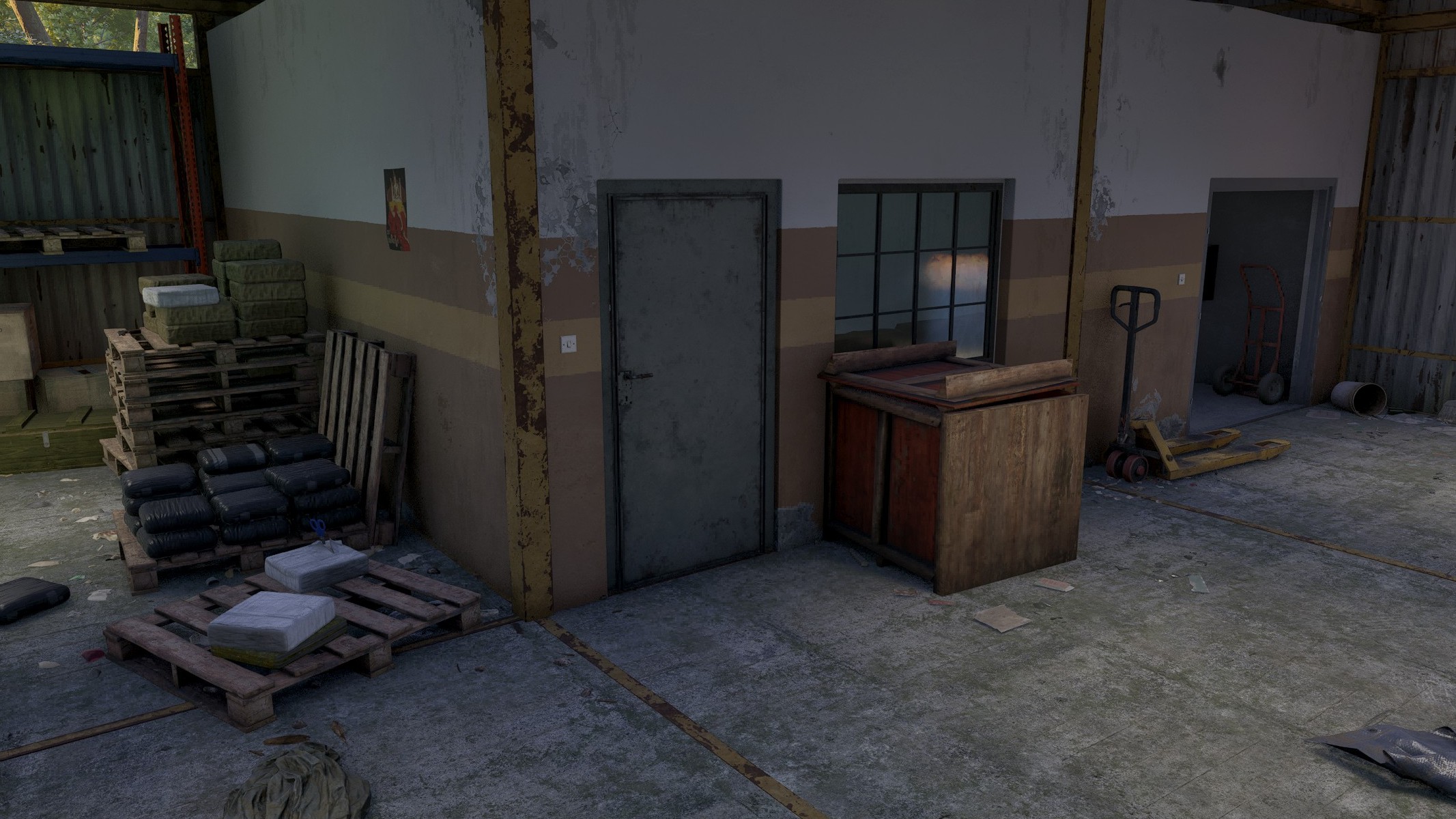 This door locked by key or/and code. To open this room you need to use key or find intel with code to interact with keypad.