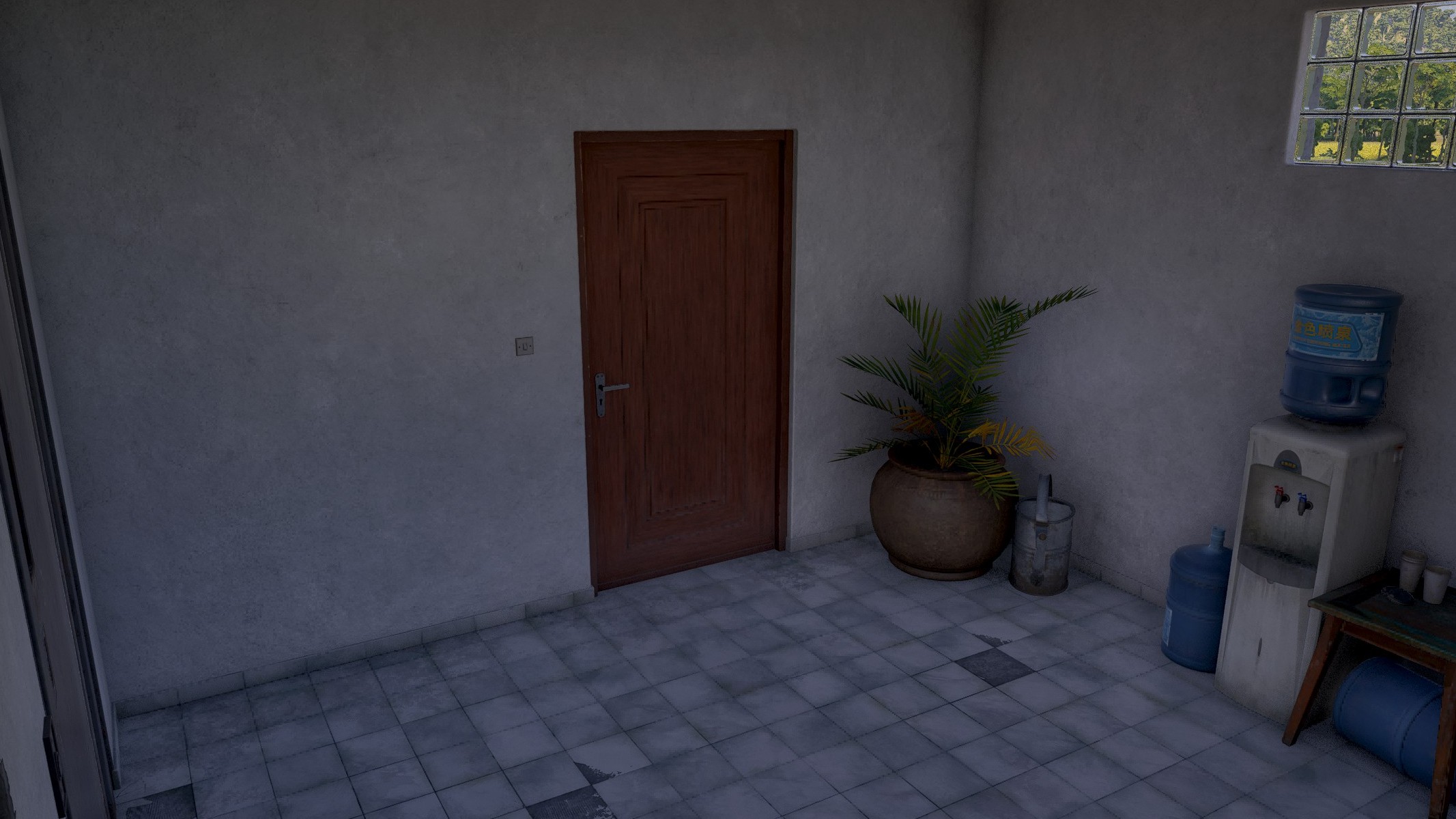 This door locked by key or/and code. To open this room you need to use key or find intel with code to interact with keypad.