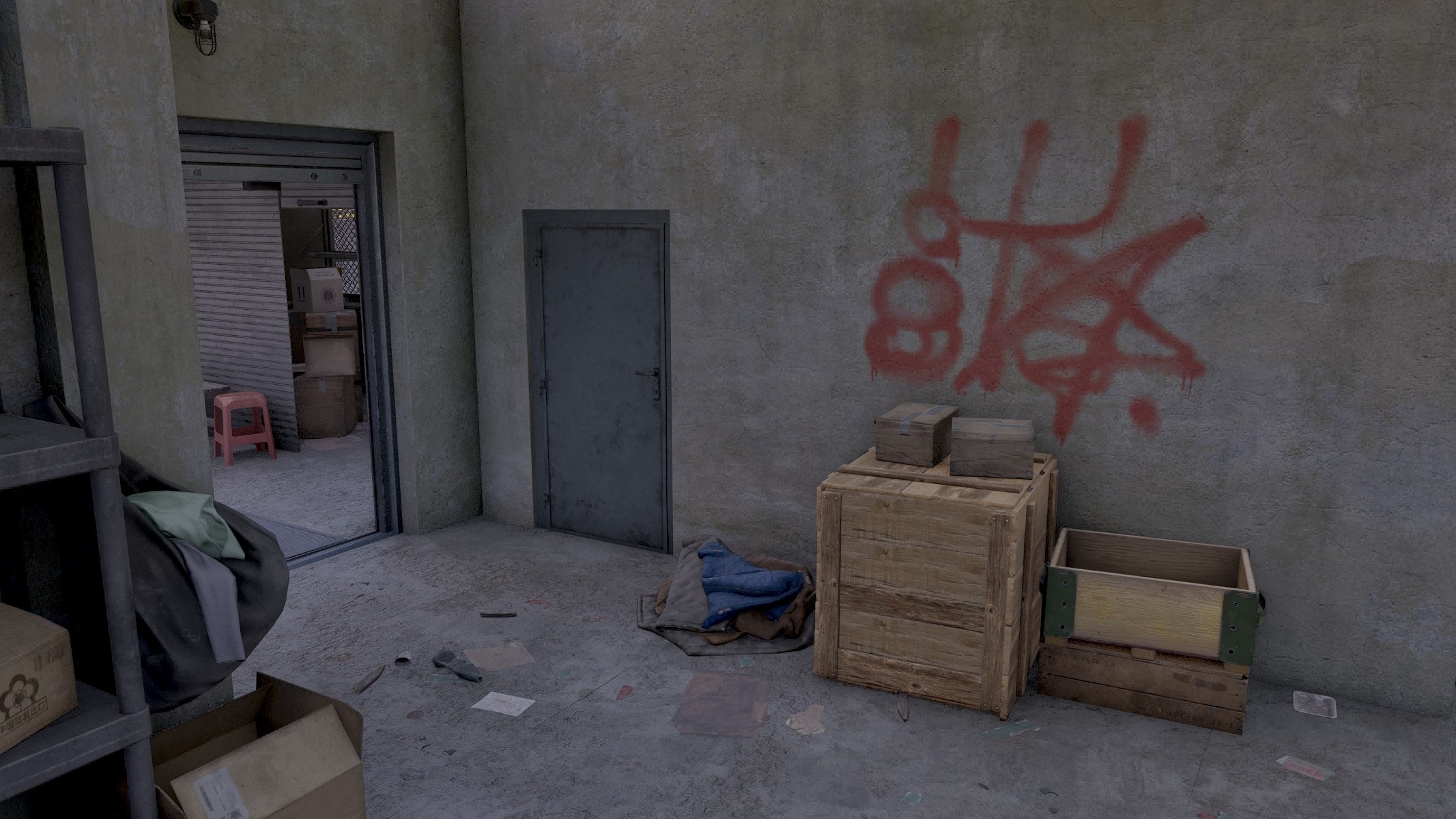 This door locked by key or/and code. To open this room you need to use key or find intel with code to interact with keypad.